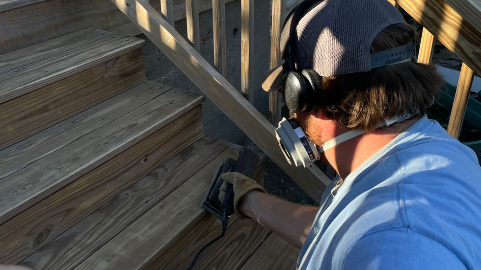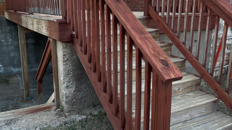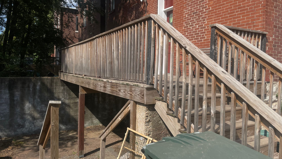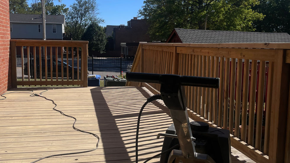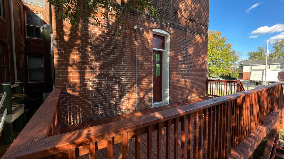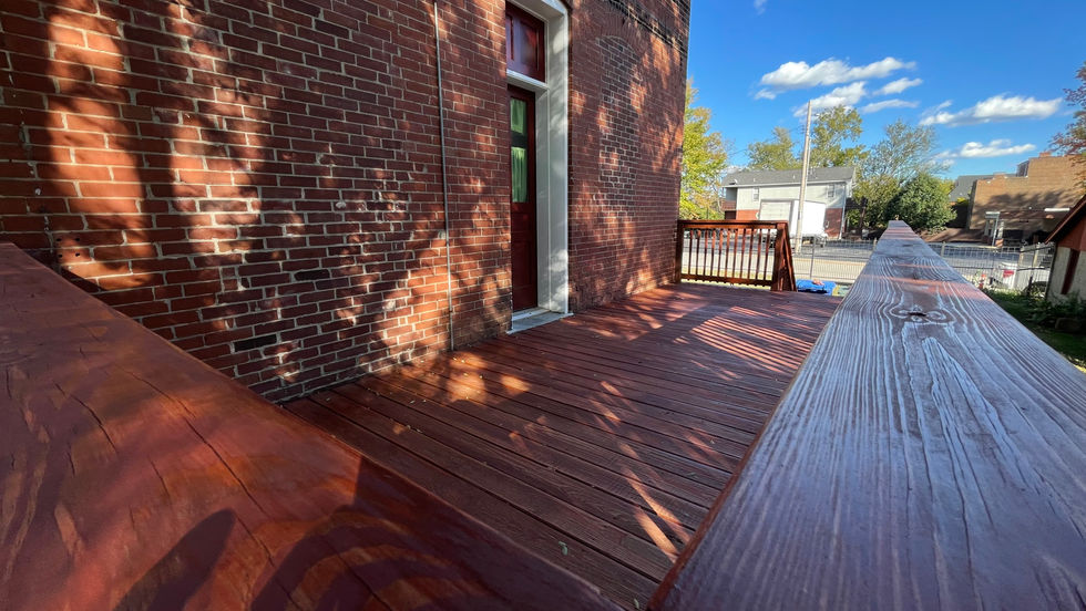 This beautiful historic home in Benton Park has a deck on the south side which never was stained properly and was exposed to the full force of the elements. Here we power washed, sanded, and stained the deck and stairs, including the cracks in-between the deck boards to make sure the whole project looked a cohesive classic barn red.